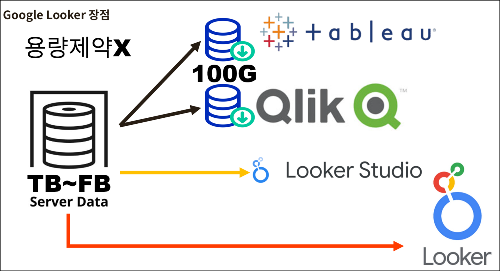 Looker는 국내에서 많이 사용하고 있는 BI툴들과 아키텍처가 다릅니다.